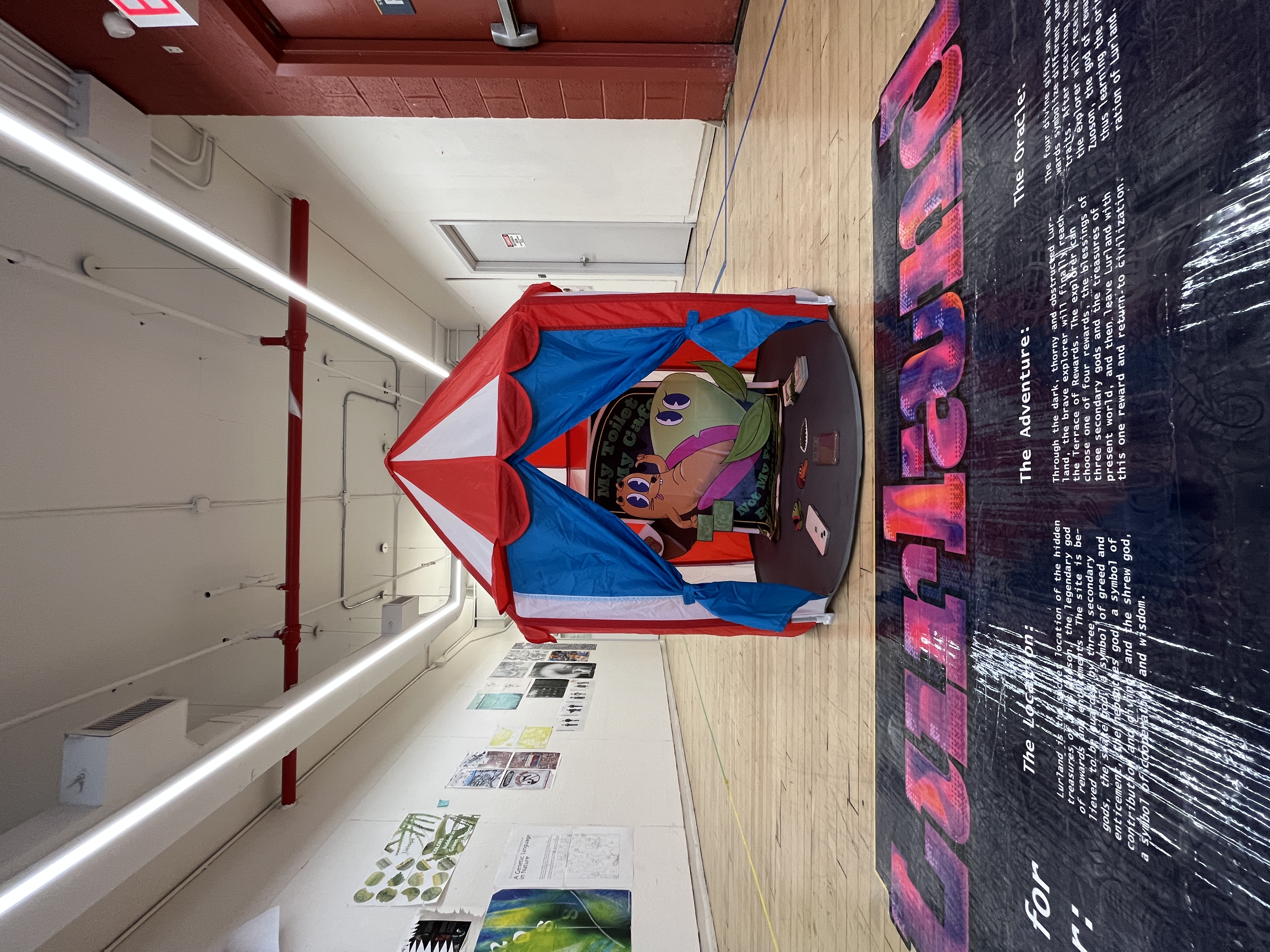 Interactivity and experiential engagement were the main focus of the project, and the VR scenario was built in an open, user- and audience-friendly, comfortable space where the VR virtual space was deployed in tandem with a number of objects in the physical space (start points, tents, props, and reward cards). The audience was invited to be part of the experience and participate in this "virtual cave adventure". They are asked to read the instructional information at the start point, cross the thorny cave and eventually find and bring out their favorite treasure. The instruction card will tell them the qualities and rewards corresponding to the treasure and will become part of their experience and memory to be taken away.